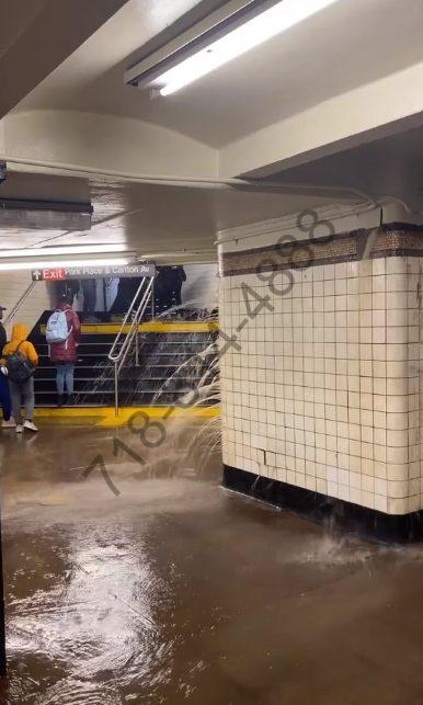 暴雨還浸濕了紐約市部分地鐵系統,布魯克林2/3線Grand Army Plaza站的一個樓梯變成了瀑布,一名旁觀者用手機拍下了這段戲劇性的視頻。