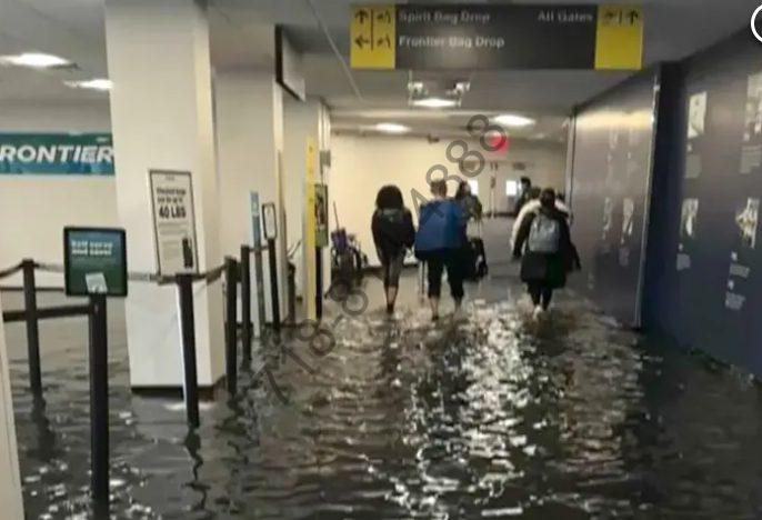 由於洪水沖入大樓,機場被迫關閉了A航站樓——精神航空(Spirit)和邊境航空(Frontier)的航班就是從這裡出發的。