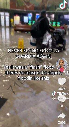 拉瓜迪亞機場(LGA)航站樓被洪水淹沒,旅客試圖逃離齊腳踝深的水域。