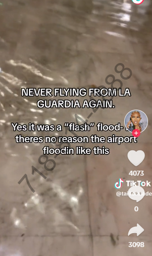 一名女子甚至分享了其中一個航站樓內的視頻,向她在社交媒體上的粉絲們展示了水從她的靴子上爬下來,滲進大樓的旋轉門。