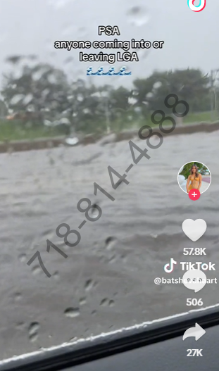 博主Batsheva Haart在社交媒體上發布的另一段視頻顯示,一輛汽車艱難地駛過周邊道路上堆積的水。