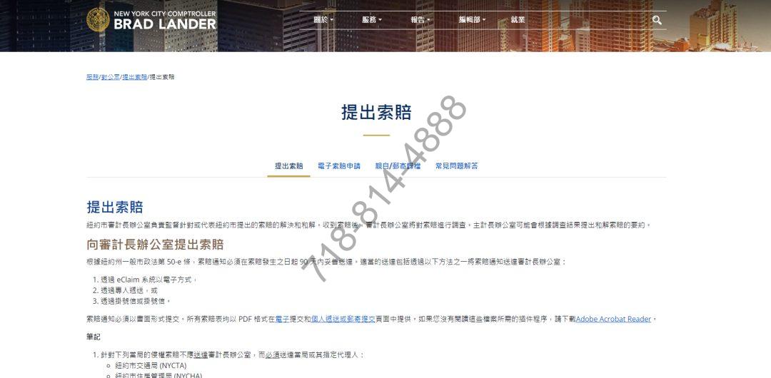 也可以填好賠償申請表格(要地保)在90天內寄掛號信去。申請表 格 連結如下: comptroller.nyc.gov/services/for-the-public/claims/file-a-claim/