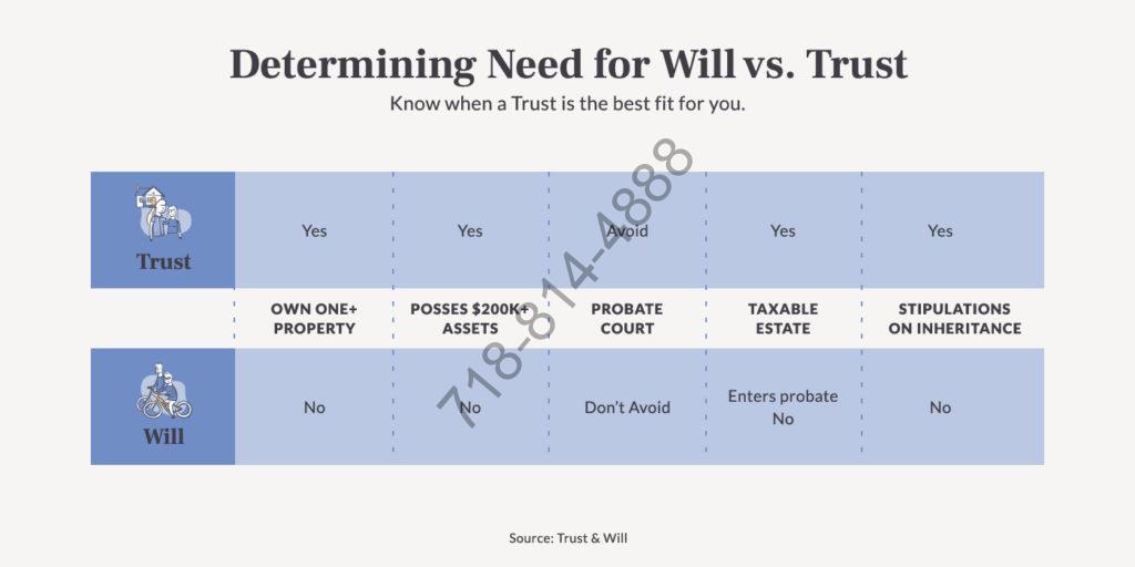 遺囑信託是通過遺囑設立的,並在設立人死後產生。生前信託是在設立人有生之年通過信託儀器設立的。信託可以是可撤銷的或不可撤銷的;不可撤銷的信託只能通過司法程序“破產”(撤銷)。